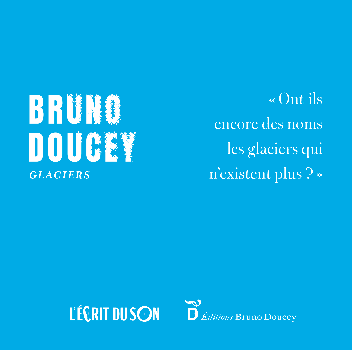 Ces glaciers dont les grincements, craquements et autres ruissellements sont la manifestation directe d’une fonte tragique, que rien ne semble plus pouvoir enrayer. Au catastrophisme, Bruno Doucey oppose la force mobilisatrice du poème. D’un texte à l’autre, il nous invite à « écrire, peindre, danser sur la glace », à déchiffrer la langue des glaciers, écouter l’ours, le pétrel et le renard... Portés par le travail de « typoglace » de l’artiste Esther Szac, les signes se font tour à tour flocons ou banquises de mots pour transformer l’espace enneigé de la page. Un livre polaire, pour ne pas laisser la beauté du monde fondre entre nos mains.
